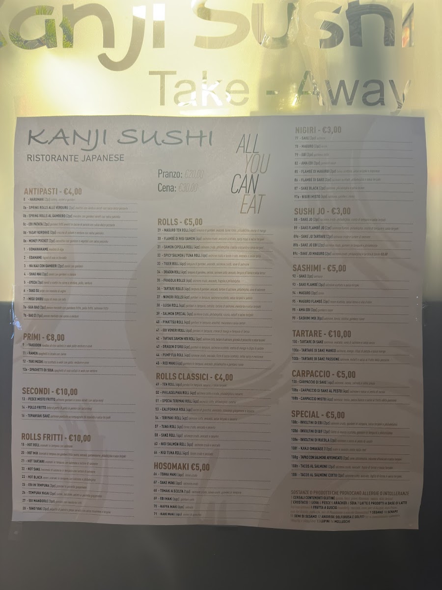Highlights like the Misto Sushi, vibrant Sushi Burrito Di Vegetariano, and delicate Sashimi Di Salmone provide a clear sense of the menu’s variety — balancing fresh raw options with satisfying cooked choices and handheld sushi burritos for a more filling experience.